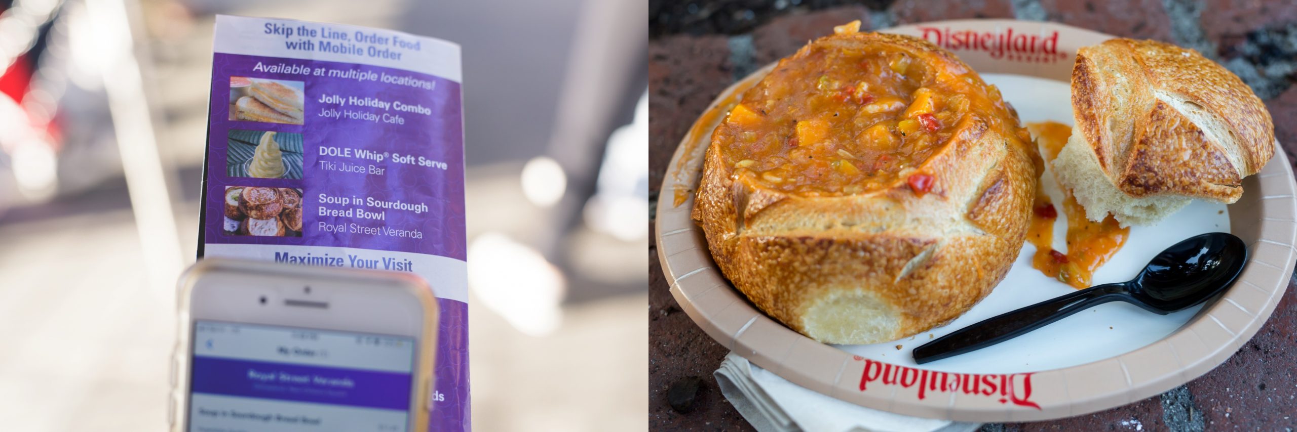 Your “I am here!” selection will prompt the cast members to prepare your food for pickup. Depending on what you ordered, and how busy of a location you are ordering from, you might have to wait 5-15 minutes or so. At some locations, if your order something simple like soup, you’ll get your order in about 30 seconds flat. It seemed like the vegetarian jambalaya at the Royal Street Veranda was in our hands before we could even blink an eye.