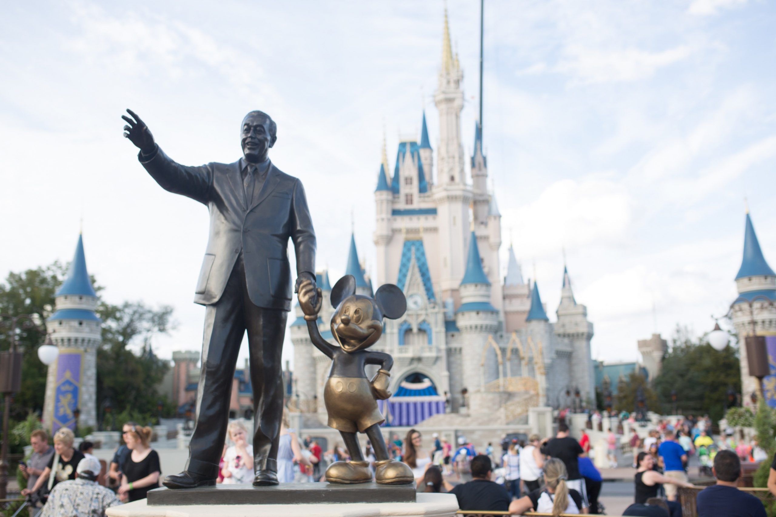 Perfectly positioned in front of Cinderella Castle is the statue of Walt Disney and Mickey Mouse.