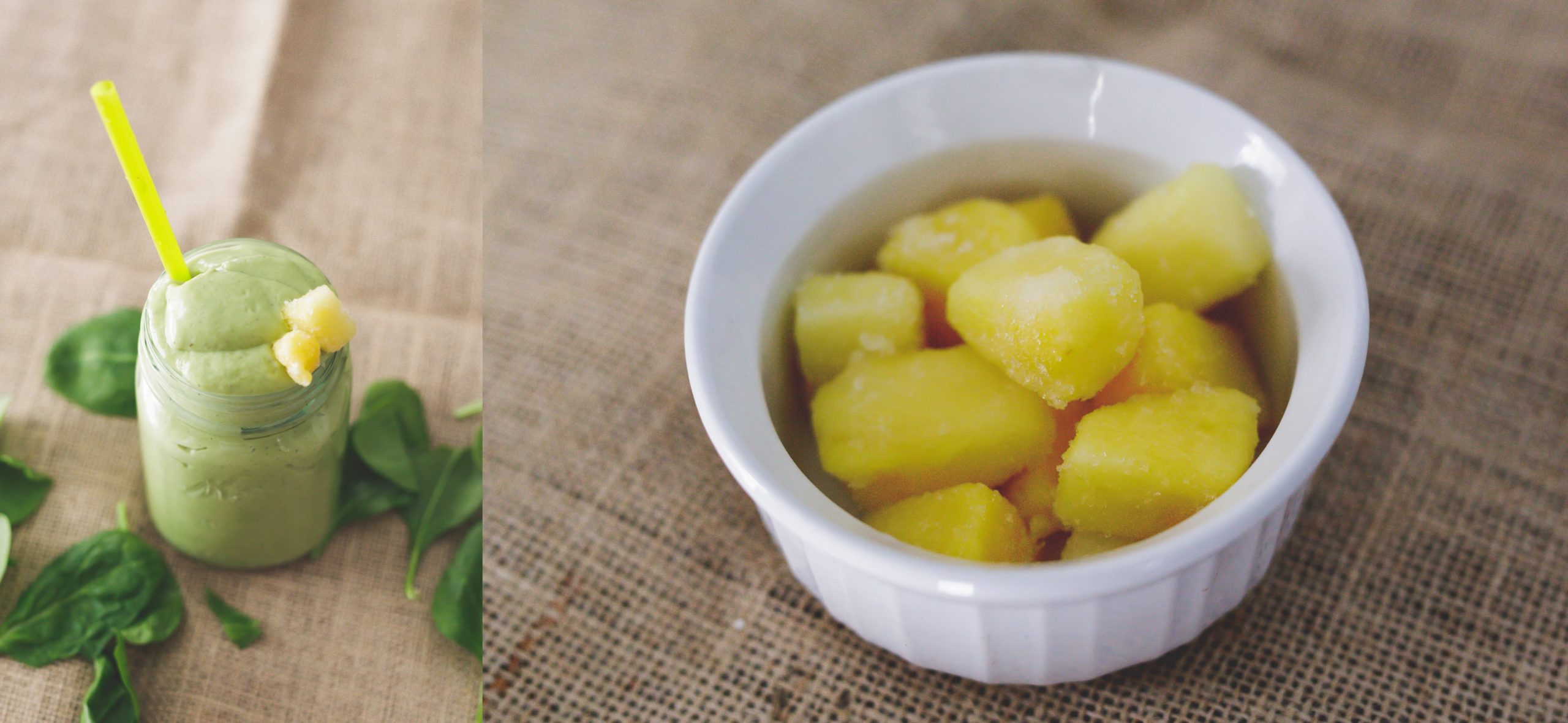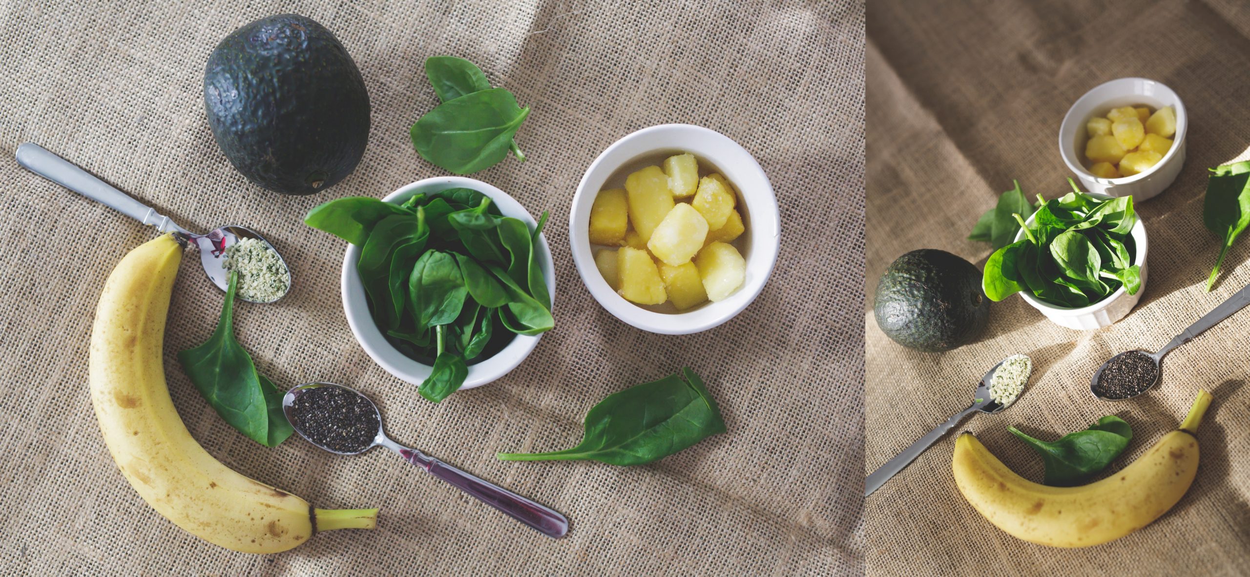 Out of a deep desire for sunshine and warm, and a love for all things Moana, we drew our inspiration. Moana, and the nod it gives to Polynesia and Hawaii, in general remind me of warmth, sunshine and super healthy foods. Although, we had our share of shaved ice when we visited Hawaii, healthy food was abundant. Fresh fruits and veggies were a staple at all of our meals. I figured it would be fitting to have a Disney-Inspired Moana smoothie that was centered on those very things: fresh fruits and veggies!