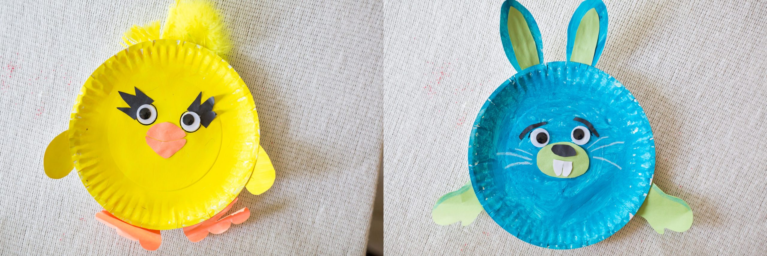 So cuddly, that it’s probably a good plan to bring these two cuties home with you, in the form of a super simple DIY Ducky and Bunny paper plate craft.