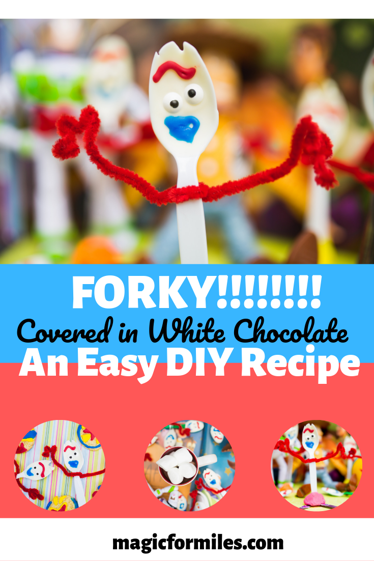 Without further ado, let’s the most delicious new toy from Toy Story 4. A DIY White Chocolate Covered Forky!
