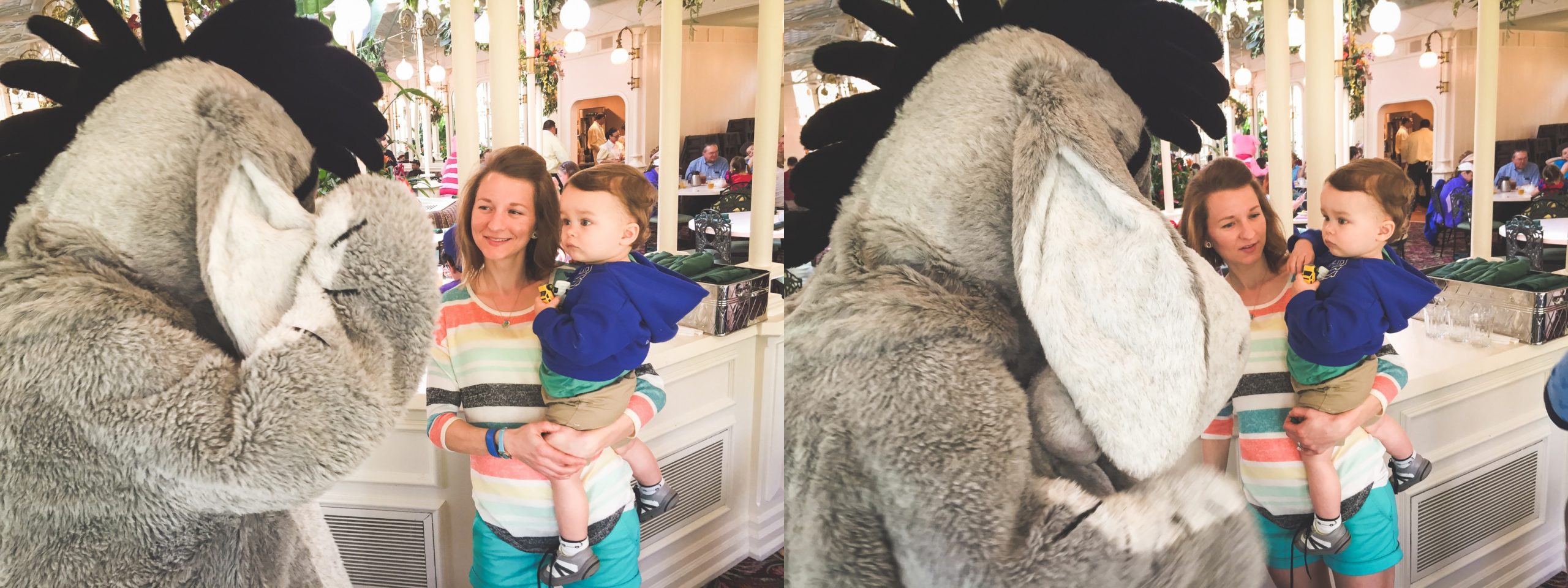 We’ve all either been there or seen pictures of little ones meeting Mickey or another character for the first time and the kid just isn’t having it. At first there is the look of hesitation, then a side eye as your little one scans the suspicious character up and down. You’ve probably been holding your child (either by habit or by necessity) and you lean in to hug the character…