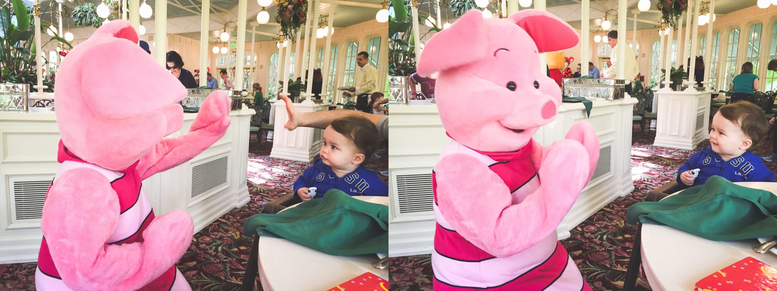 At a meal they can scan the whole dinning room and can watch the character as he or she makes his or her rounds. Once the character comes to your table you have the option of waiving from afar or by this time your little one might be warmed up and ready to meet and mingle! Yay! Smile and say cheese.