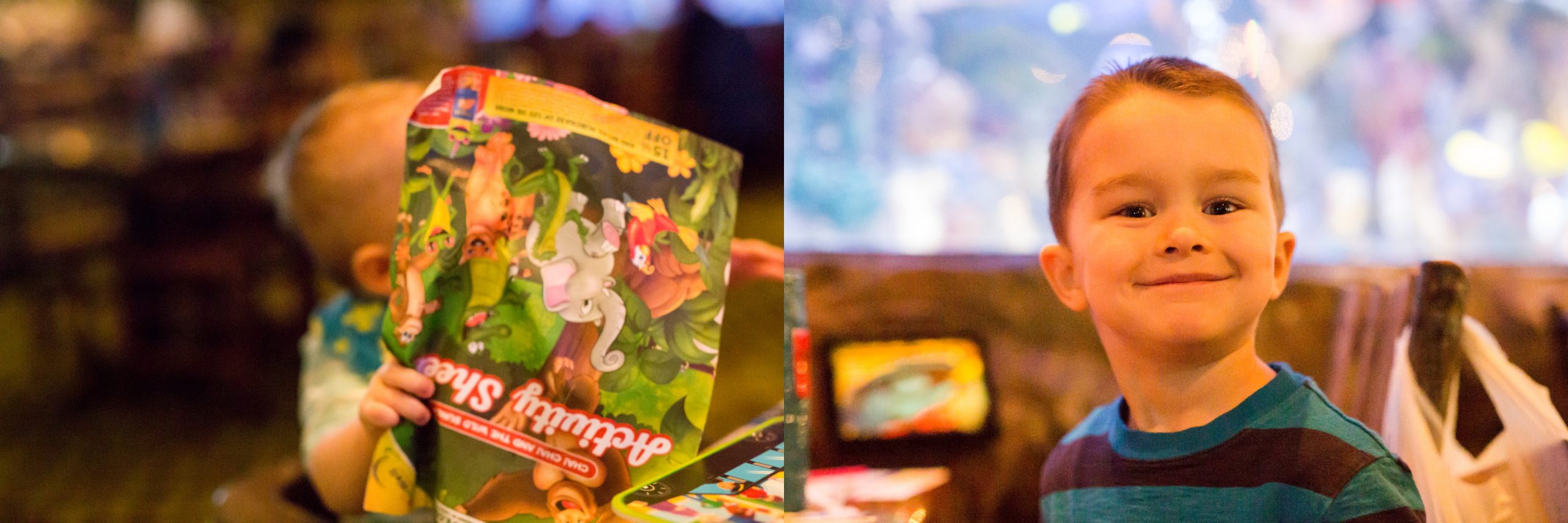 His Words: Mr. D. is a big fan of the bar stools located in Rainforest Cafe. He likes being able to sit on the different seats while pretending he is the different animals.