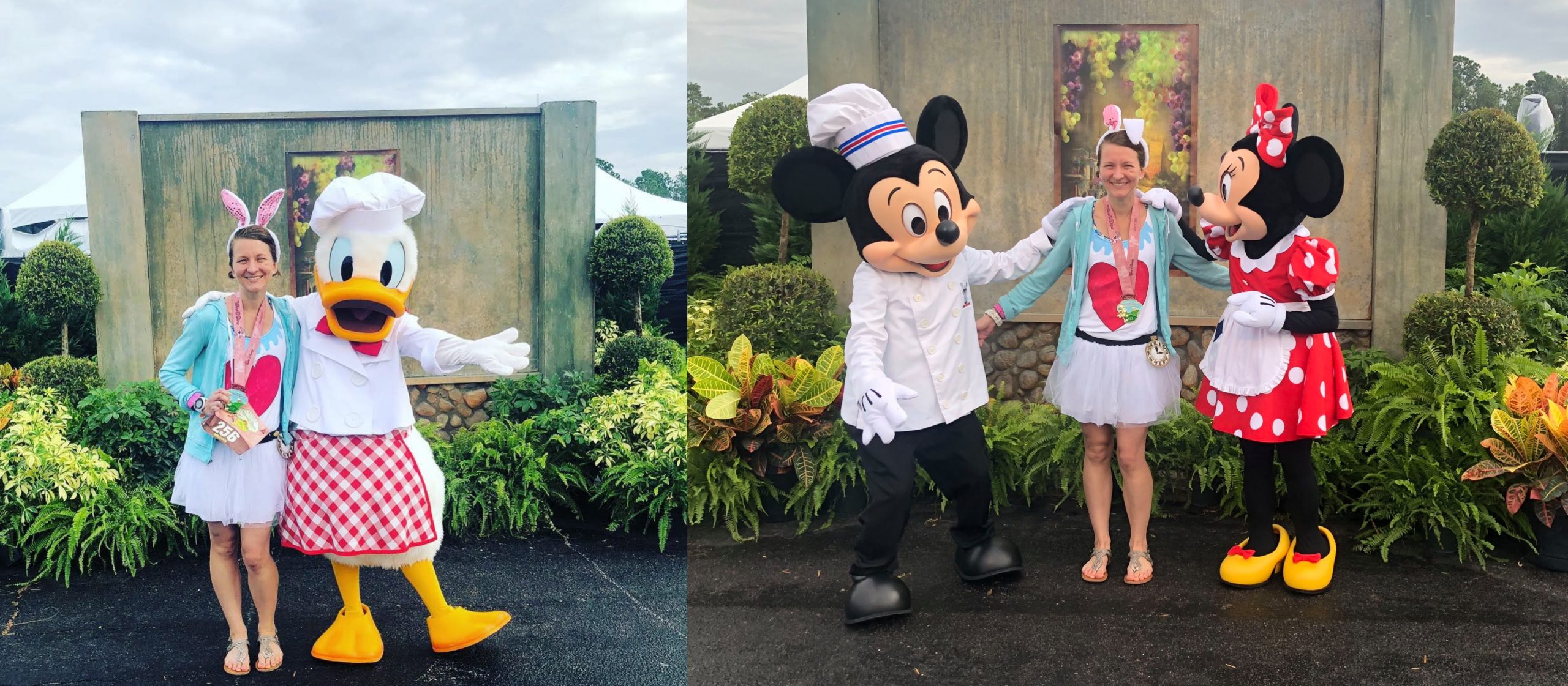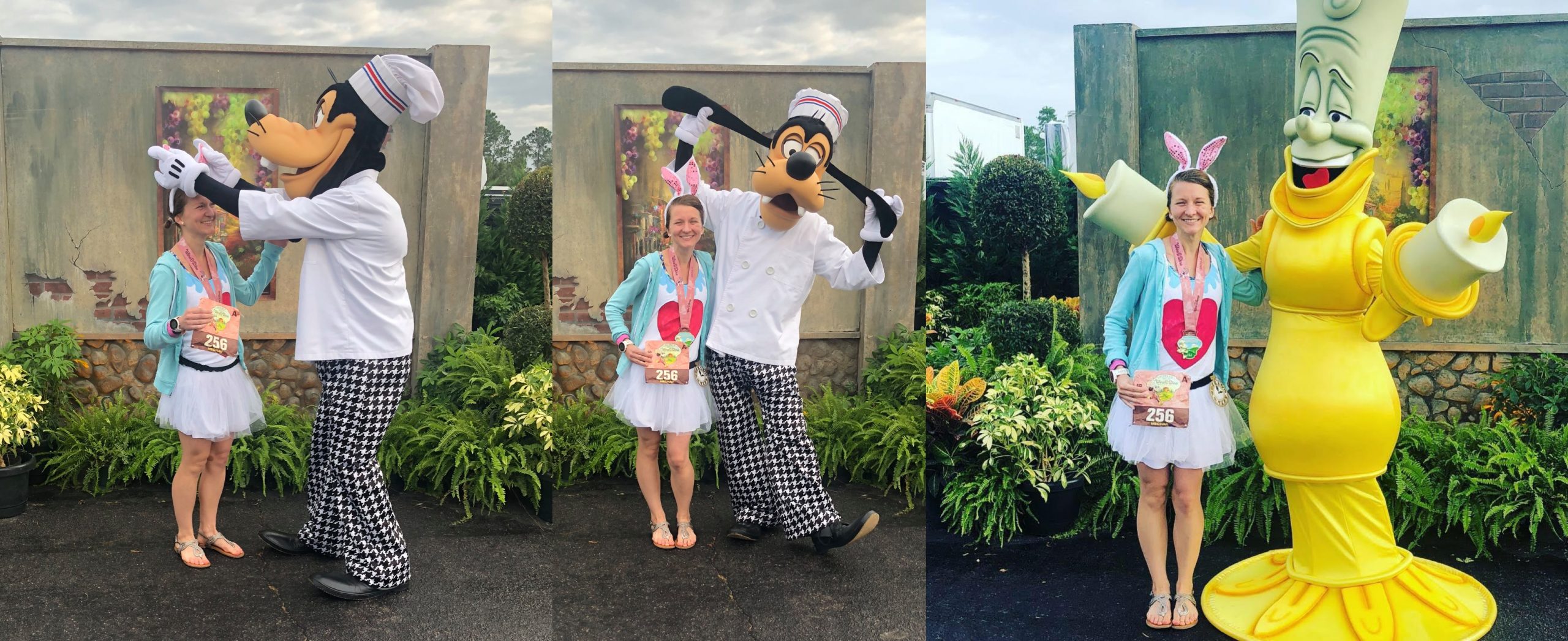 Things worked out in my favor during Wine-and-Dine as I was one of the first few hundred people to cross the finish line, making my character wait time no more than 5-10 minutes. This was after getting ice for my hip, my post-race food box and changing into some dry post run clothes! If you are starting in one of the last corrals, it might be beneficial to wait in the character line near the start line as you’ll have a little extra time. Just remember, standing on your feet in line can still drain some of your energy. Something you definitely want to conserve!