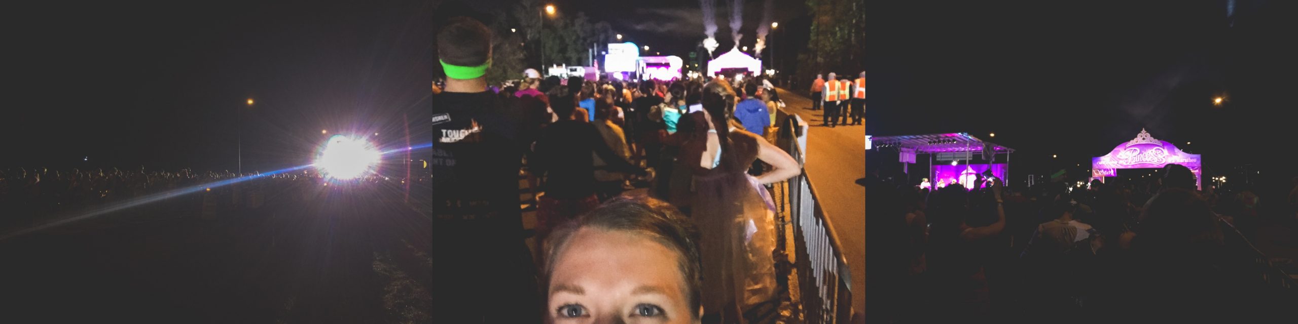 About an hour before the event starts (this may vary) RunDisney volunteers and officials will allow participants to walk to their corrals. This is the perfect time to get a warm up in before your race. There is usually not a ton of room in the start area to complete this, so it will involve people dodging or running in a circle (like, a literal circle). Depending on your race, the walk to the start can vary. For the Walt Disney World marathon, the walk to the start was very long, so make sure to add in more time to allow you to get to the start line with enough time to make your corral, especially if you are running a warm-up. I almost missed my corral start for the Princess Half Marathon because I under estimated the time it was going to take to get to the corral!
