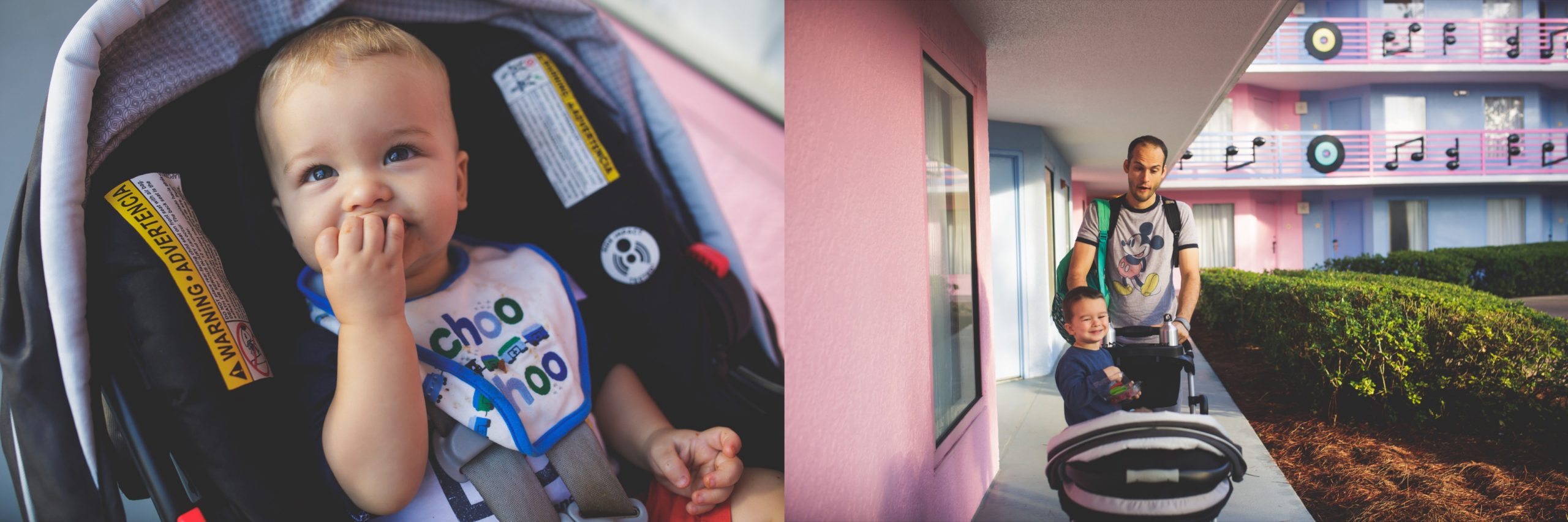 Strollers need to be folded up and tucked in with you on the bus. It is important to not have your stroller expanded or blocking the aisle (as much as possible) when you are riding on a Disney bus. We have found that having a stroller with a hook to keep it collapsed has been a lifesaver. Having a stroller expand on its own on a moving bus is not the coolest thing in the world.